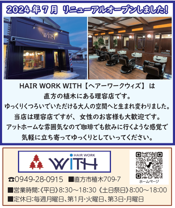 HAIR WORK WITH【ヘアーワークウィズ】は直方の植木にある理容店です。