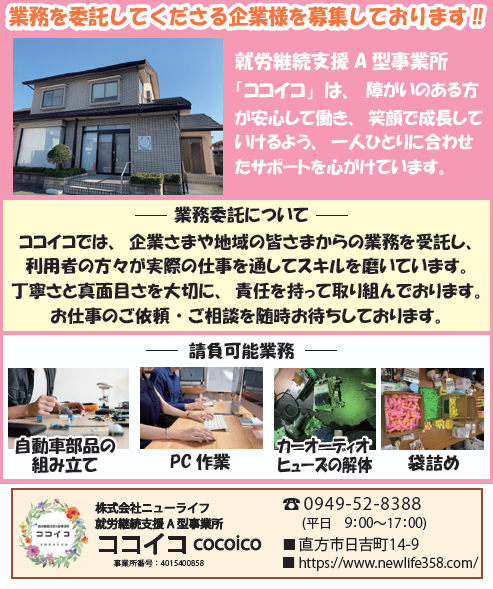ココイコでは、企業さまや地域の皆さまからの業務を受託し、利用者の方々が実際の仕事を通してスキルを磨いています。