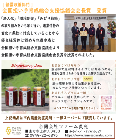 HP・ONLINE SHOP:https://www.farm-sadamitsu.com/