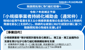 地域の雇用や産業を支える創業後1年以内の小規模事業者等(創業後、事業開始前の事業者も対象)の生産性向上と持続的発展を図ることを目的とし、持続的な経営に向けた経営計画に基づく販路開拓等の取組を支援します。